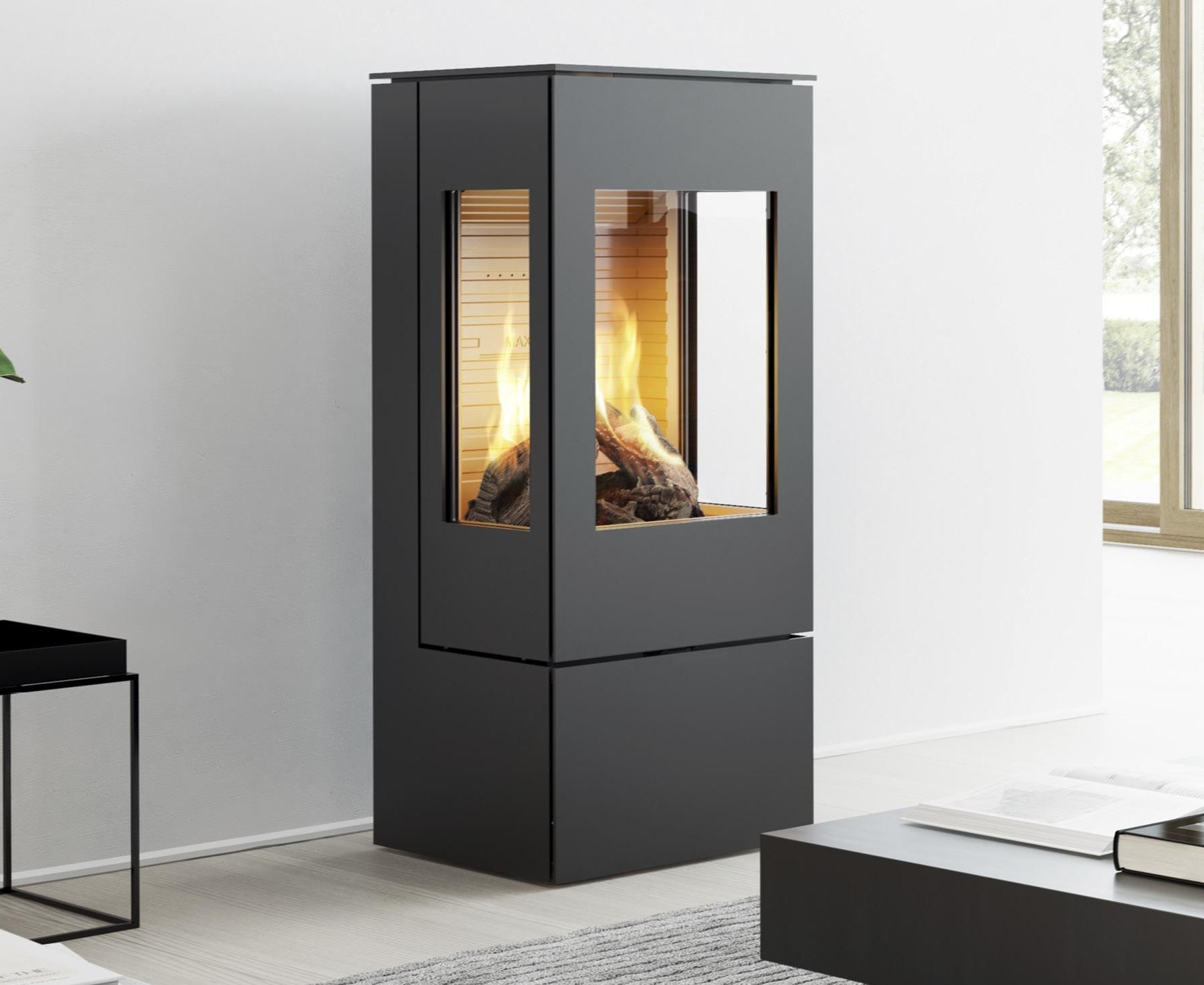Nexo Gas is the epitome of minimalism and clean lines allowing for a big flame picture. This free-standing gas fireplace has a serene and beautiful view of the flames encased in glass on 3-sides. Thermostatic remote with automated features for your convenience.